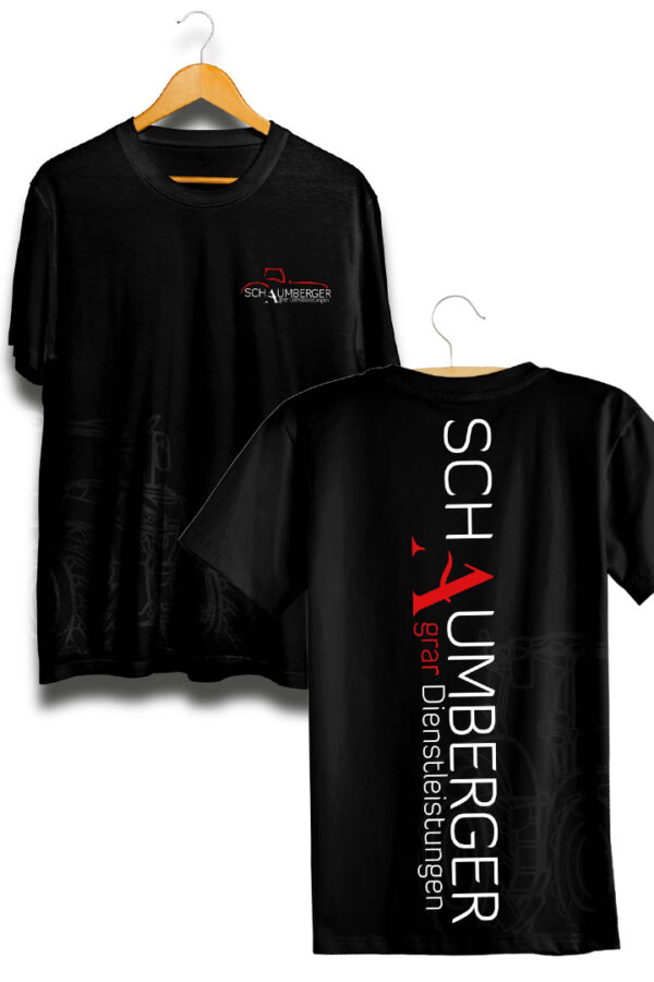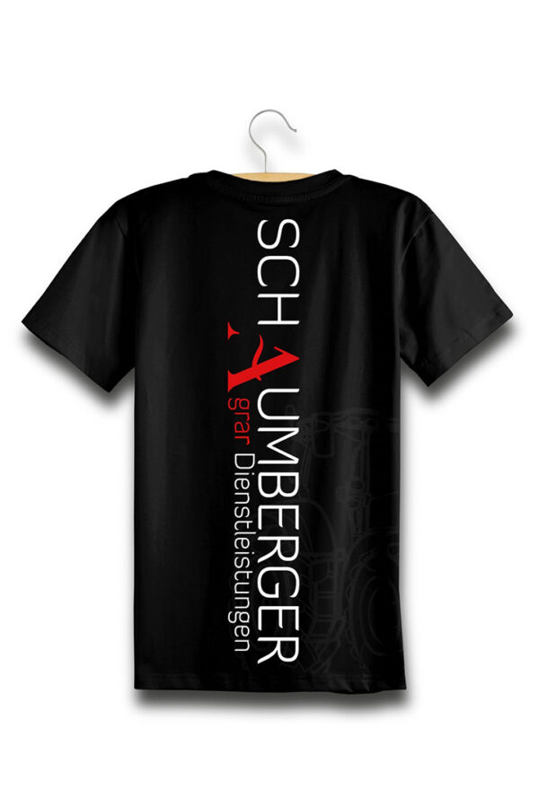 Ein echter Hingucker ist der senkrechte Schaumberger Agrar Schriftzug auf der Rückseite, der dem Shirt einen markanten, modernen Look verleiht.